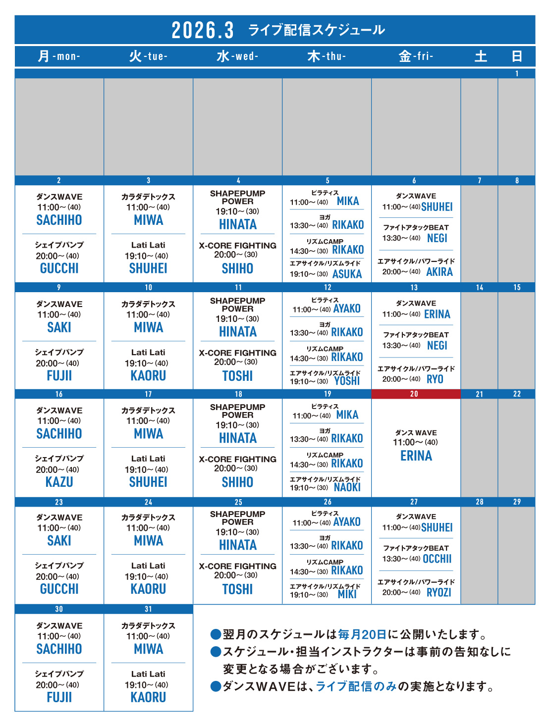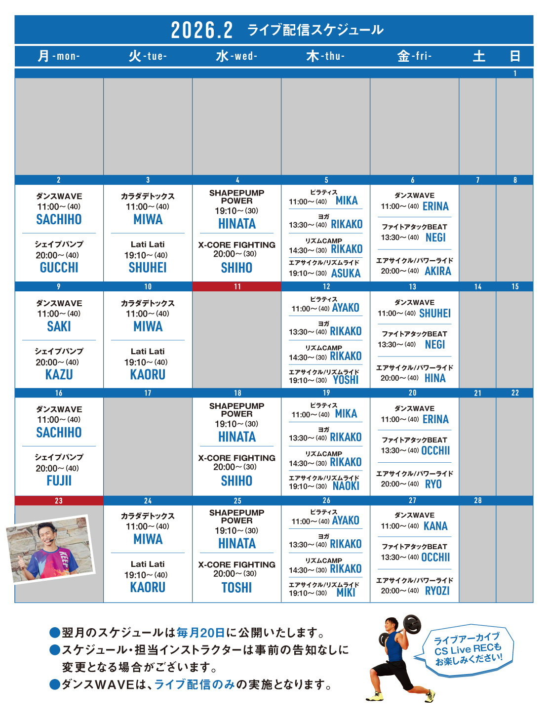 2026年2月のライブ配信スケジュールを更新しました!